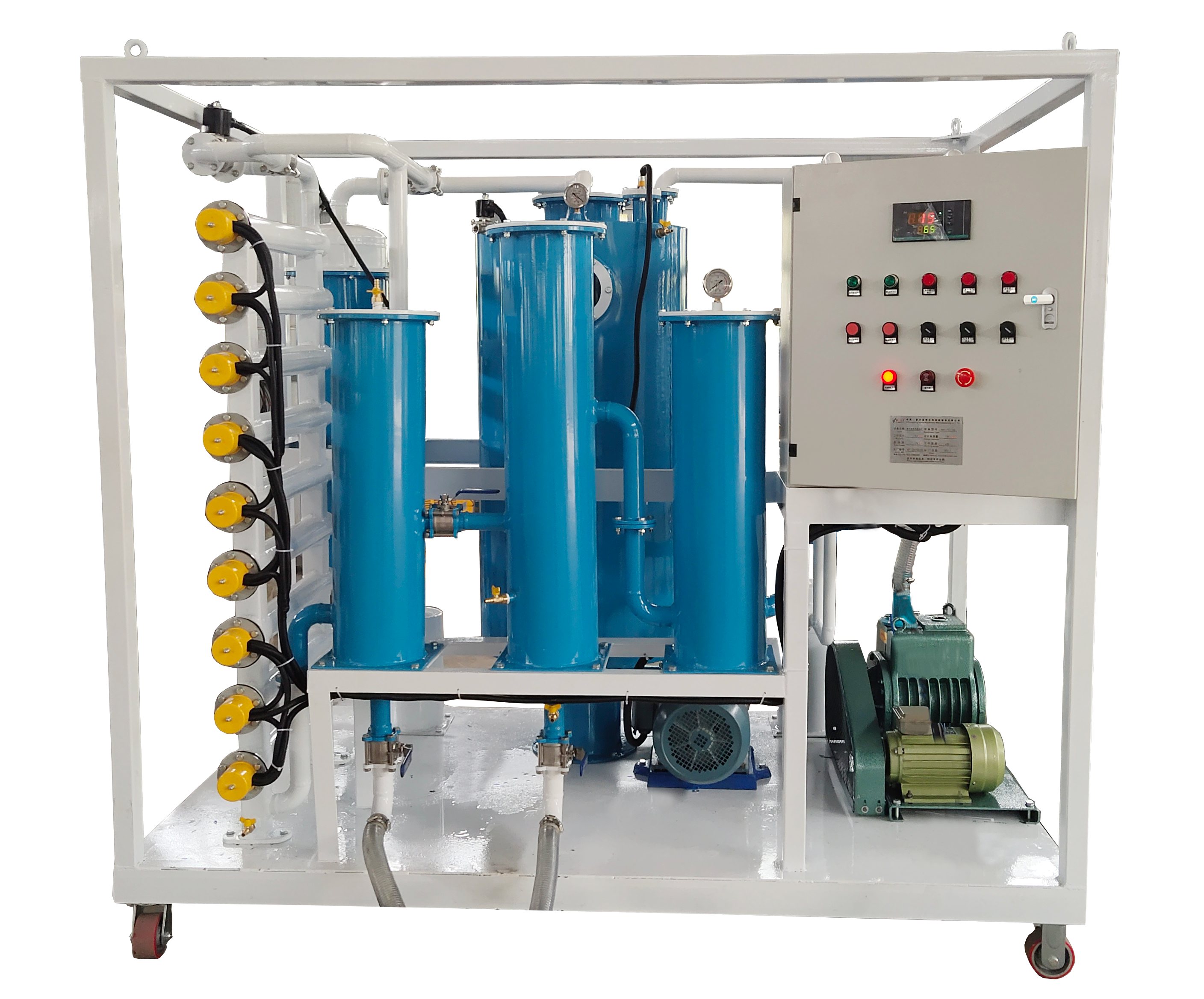 油的粘度。高粘度油不能通過(guò)細濾網(wǎng),需要降低精度。如果片面強調油的清潔度而采用精密濾網(wǎng),就會(huì )增加真空濾油機的運行成本。濾油機應選擇適當的過(guò)濾精度,也可增設真空濾油機預熱油箱,提高溫度,降低粘度。