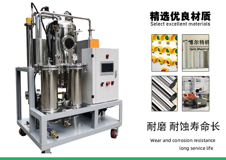 1.采用超大面積筒式高精密濾材,過(guò)濾逐級加密除去油中的細微顆粒,納污量大,除雜能力強。